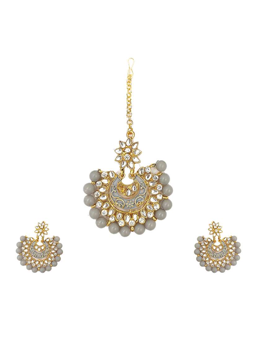 ZaffreCollections Latest Round Grey Maang Tikka with Earrings Set for Women and Girls