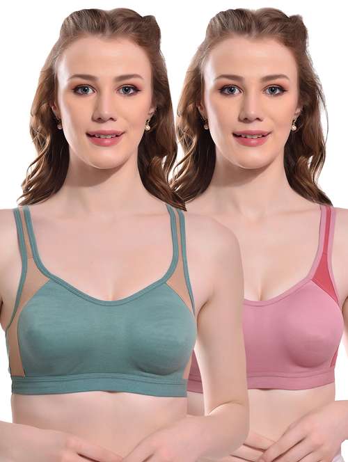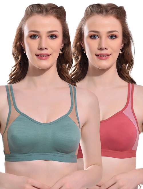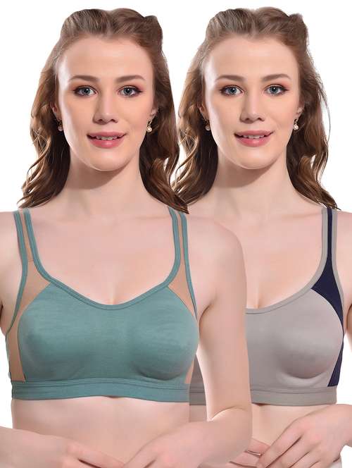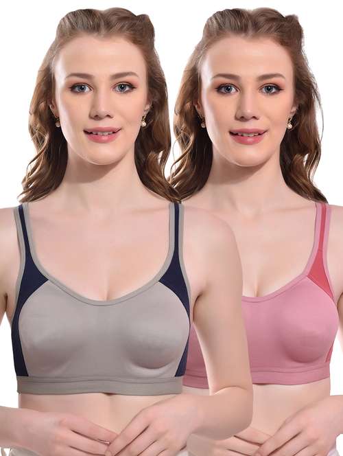 A color block stylish sports look moulded cup full coverage non-padded bra is a trendy and functional bra designed to provide support and comfort for women during their workouts or any physical activity. The bra features a stylish color-blocked design that adds a touch of fashion to your workout wardrobe.