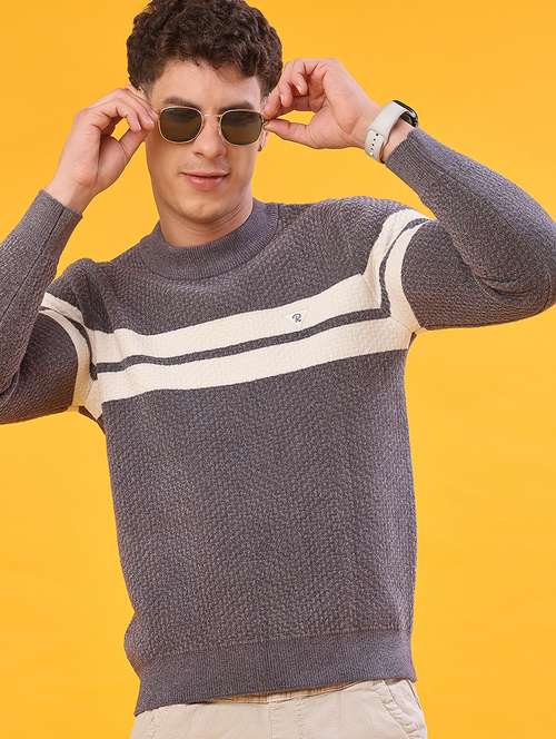 - » men self design long sleeve regular fit pullover