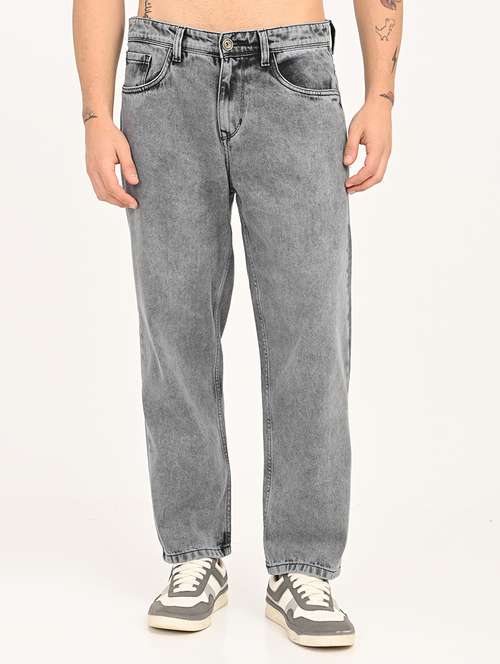 men grey plain mid rise baggy jeans