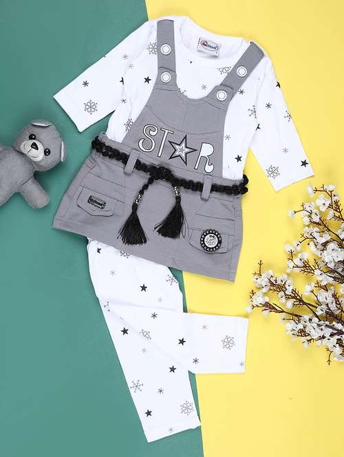 - Browse through the huge collection of casual wear twin sets and jump suits for girls in grey colors and designs to make your young lady look the fashionista that she is.