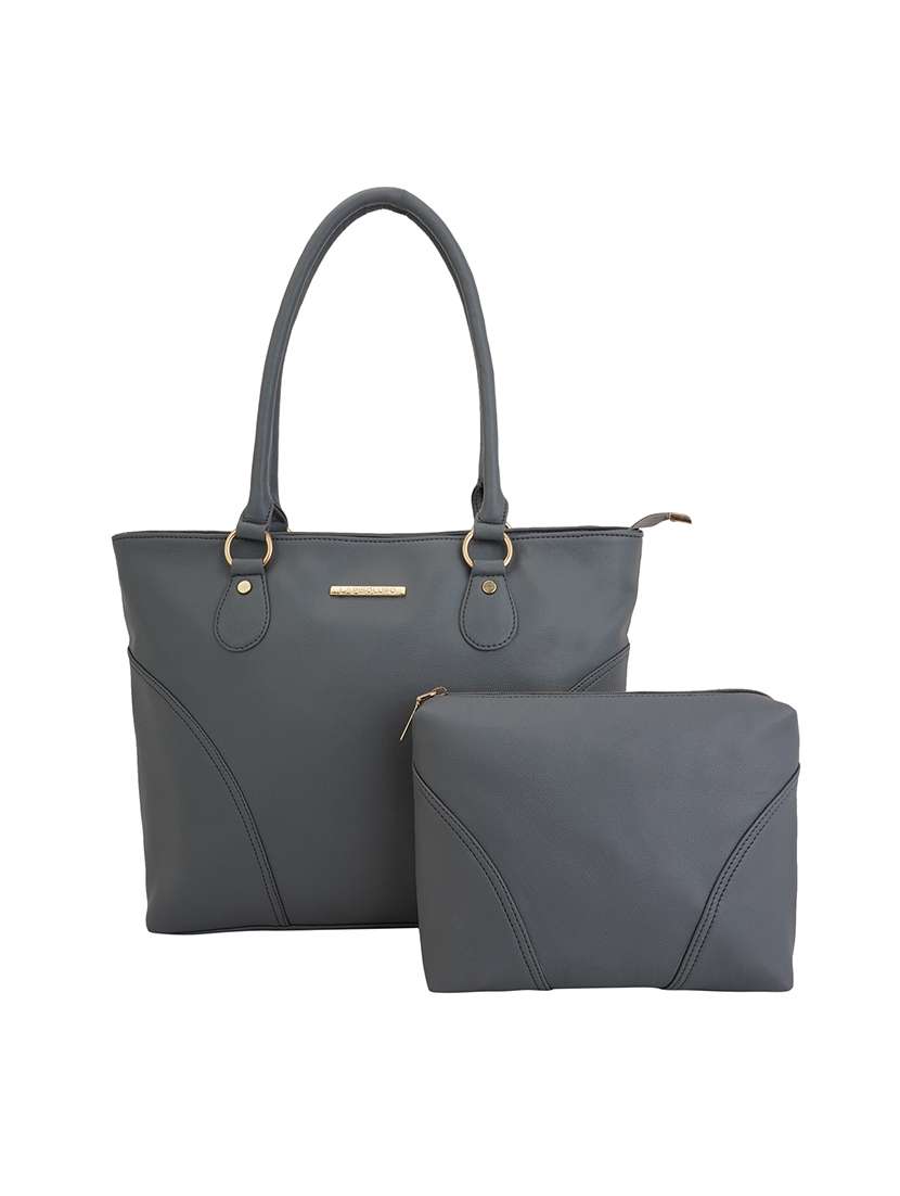 grey leatherette (pu) combo handbag