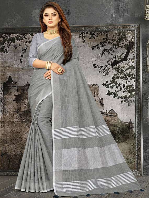 women solid plain saree with blouse