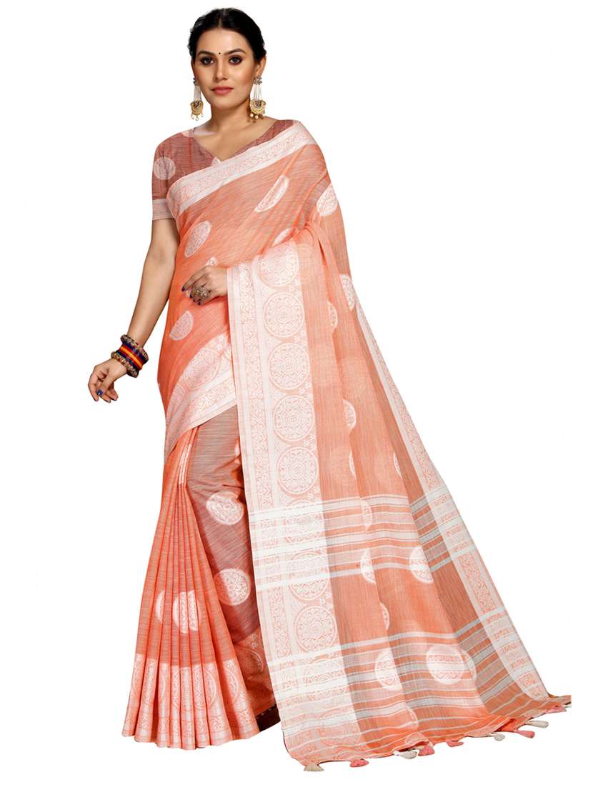 - » peach self design woven saree with blouse