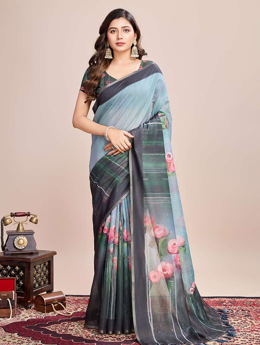 women floral printed casual wear saree with blouse