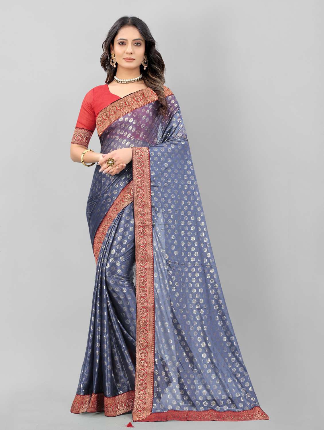 - » lace detailed foil printed saree with blouse