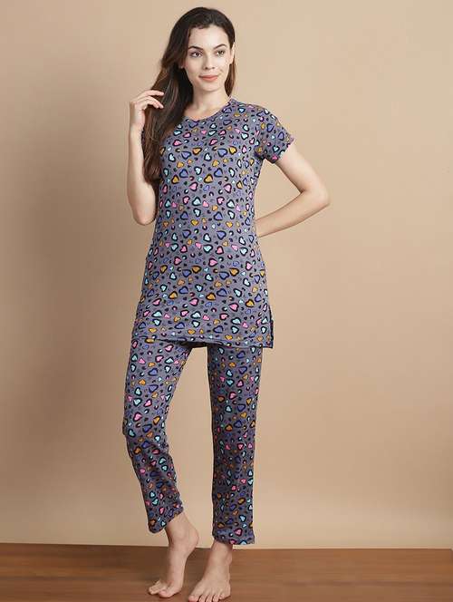 grey printed top & pyjama set