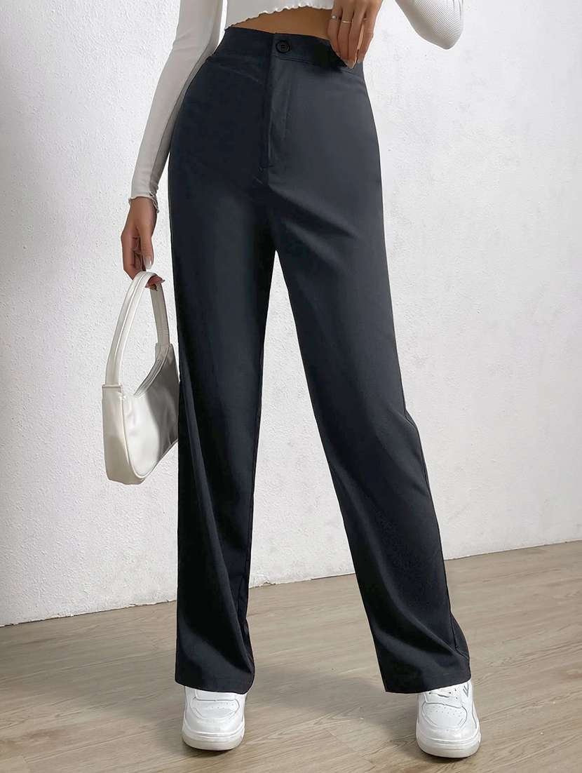 - » women solid high rise straight trouser