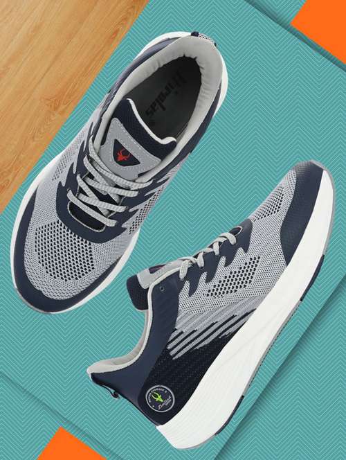 A pair of Grey & Blue walking shoes, has regular styling, Lace-up detailing.