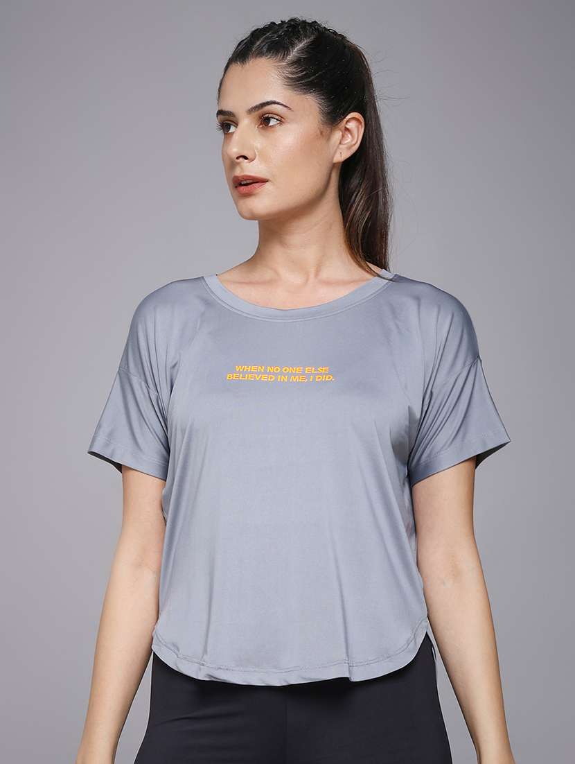 - » women typography prnted dri-fit sports t-shirt