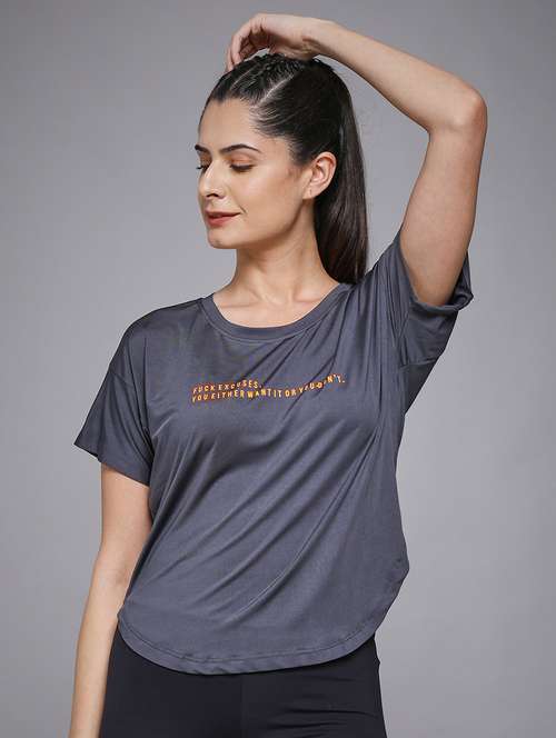 - It’s definitely not okay to be boring! So, are you ready to take things a tad bit unconventionally? Wear your tees in chest print types for (gym occasions and that too in polyester material.