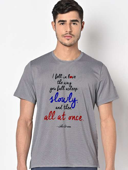 men grey round neck regular fit t-shirt