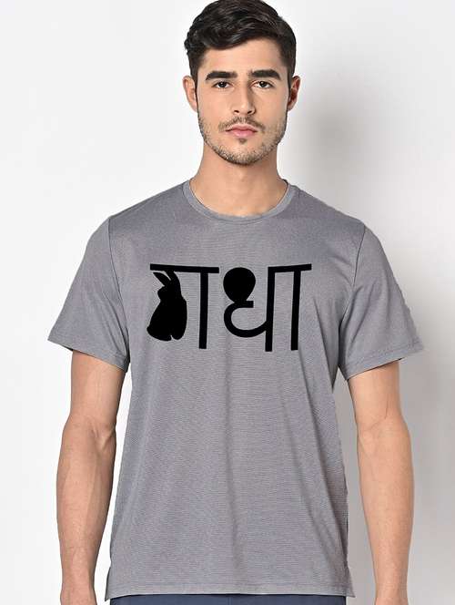 men grey round neck regular fit t-shirt