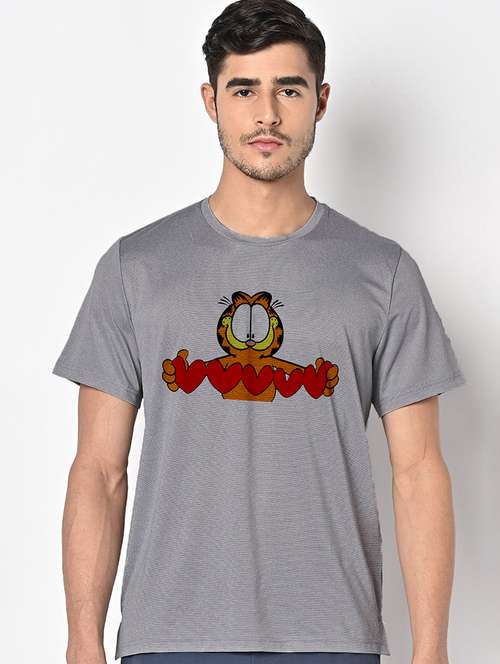 men grey round neck regular fit t-shirt