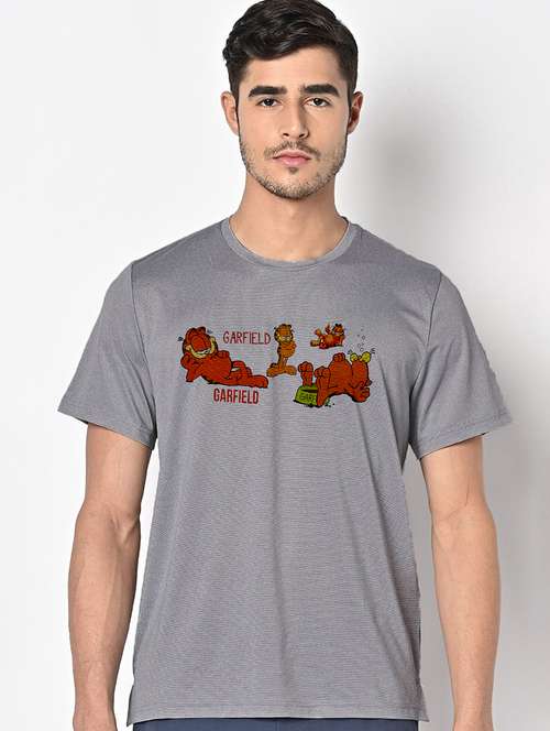 men grey round neck regular fit t-shirt
