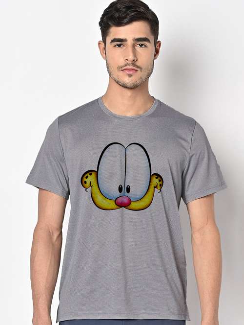 men grey round neck regular fit t-shirt