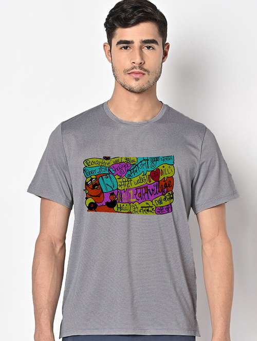 men grey round neck regular fit t-shirt