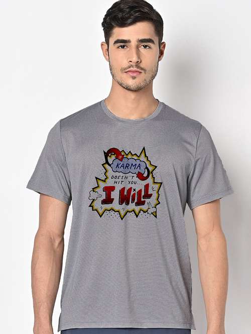 men grey round neck regular fit t-shirt
