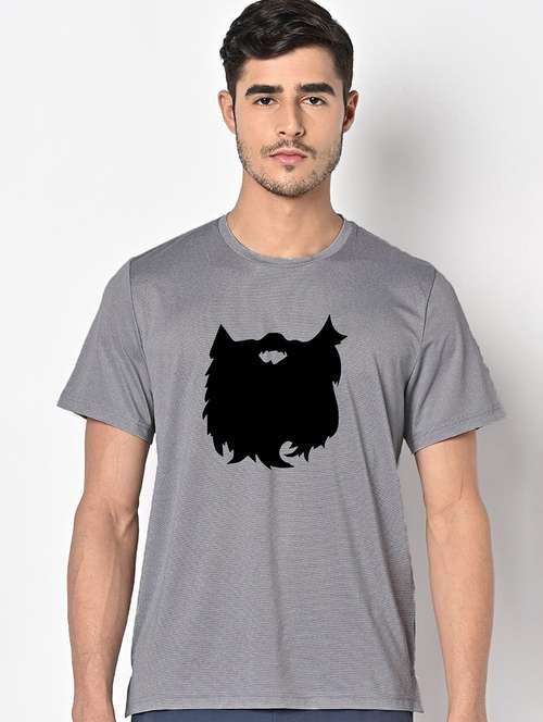 men grey round neck regular fit t-shirt