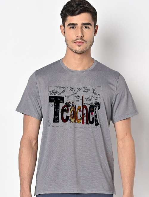 men grey round neck regular fit t-shirt
