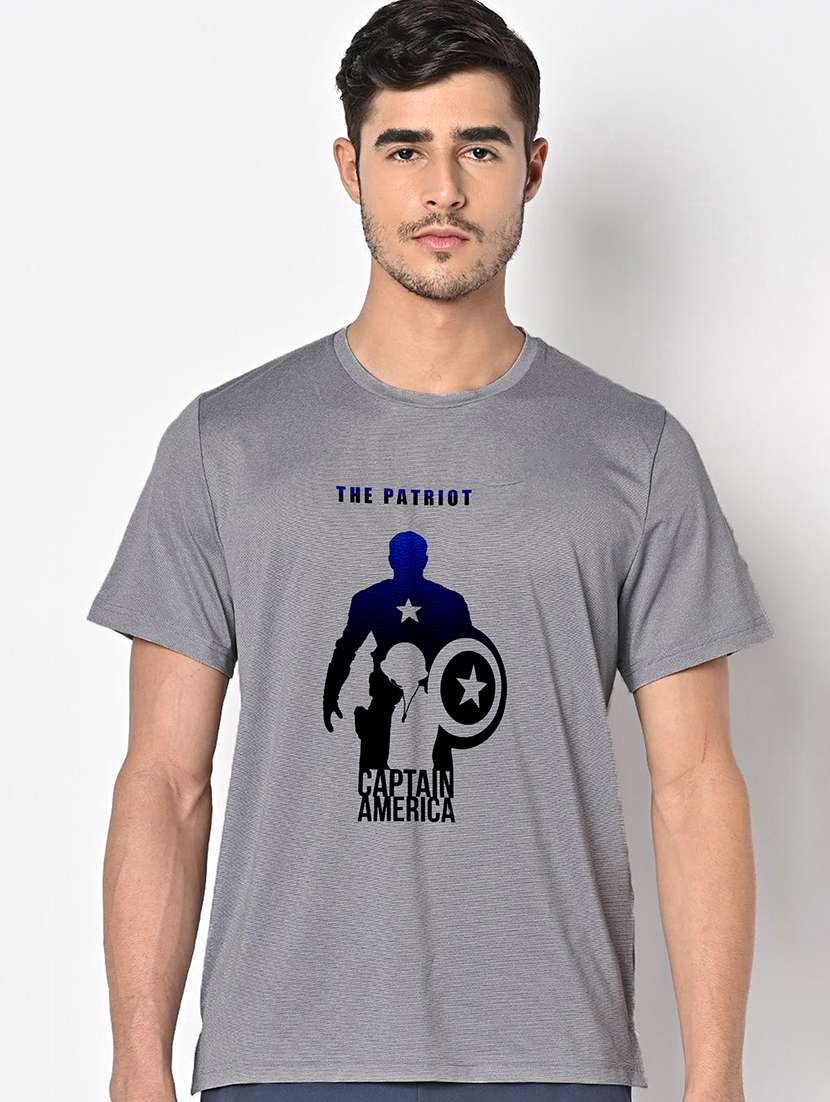 men grey round neck regular fit t-shirt