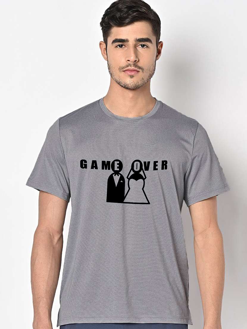 men grey round neck regular fit t-shirt