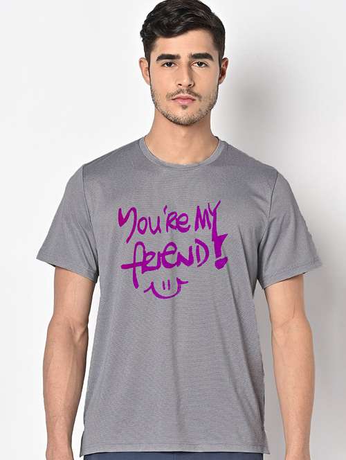 men grey round neck regular fit t-shirt