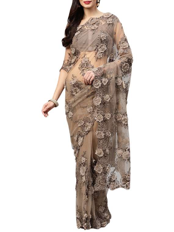 floral embroidered saree with blouse - 15830186 - Very Small Image - 1