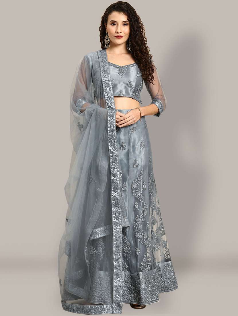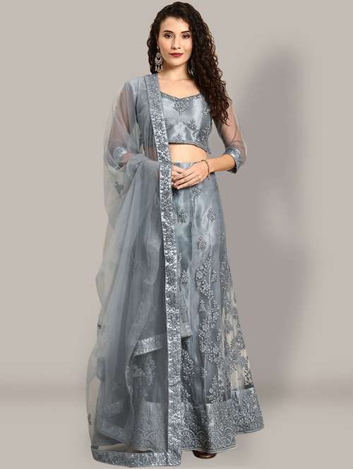 - » women grey embroidered semi-stitched lehenga
