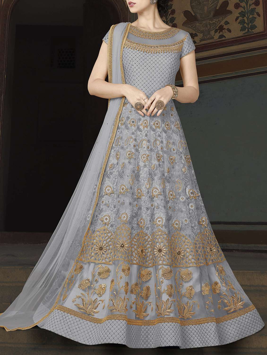 - » embroidered semi-stitched anarkali suits