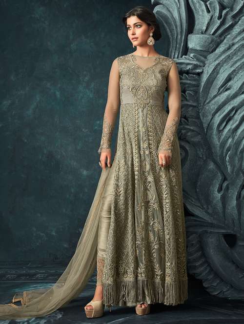 tonal embroidered kalidaar suit with fringes - 15720476 - Very Small Image - 1