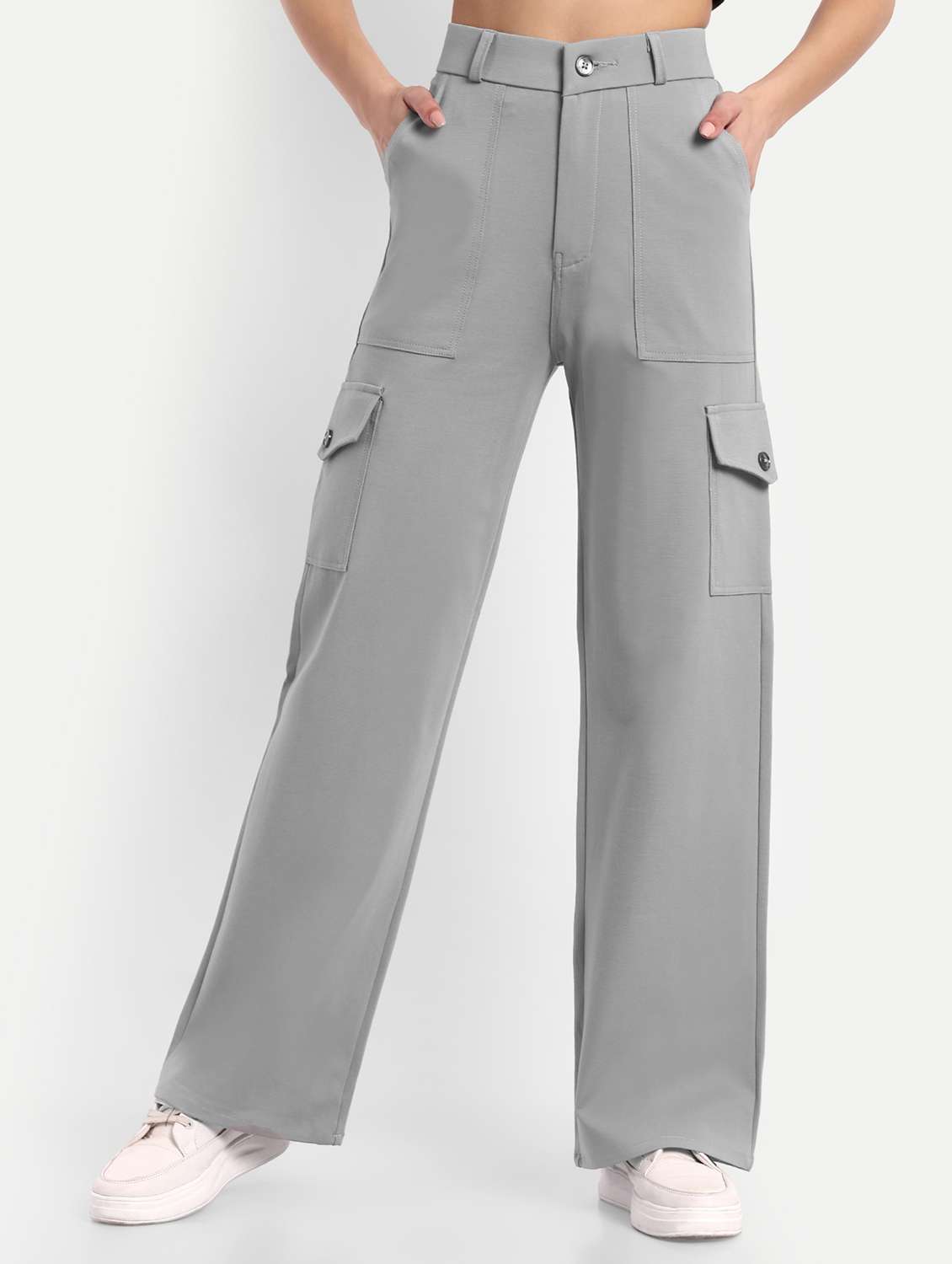 - » women grey solids full length cargos