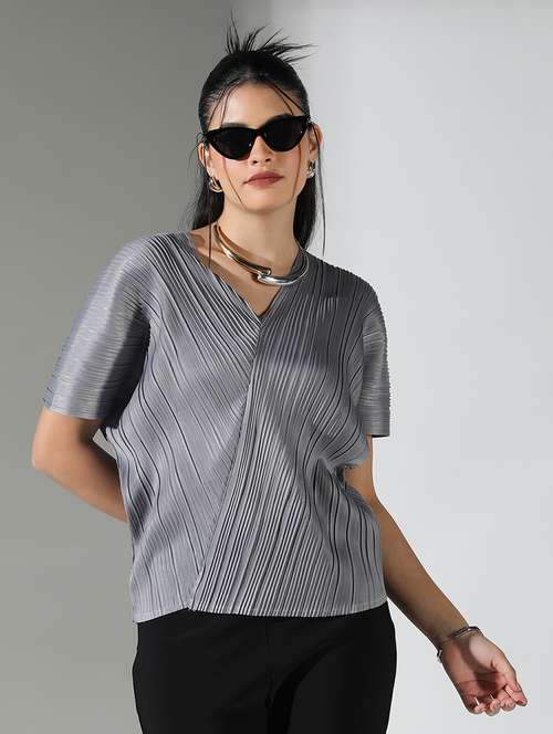 - » women grey solid short sleeve top