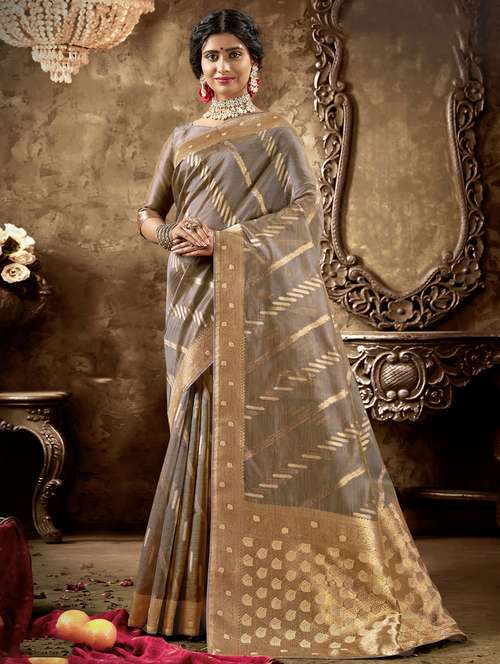 golden zari work woven saree with blouse