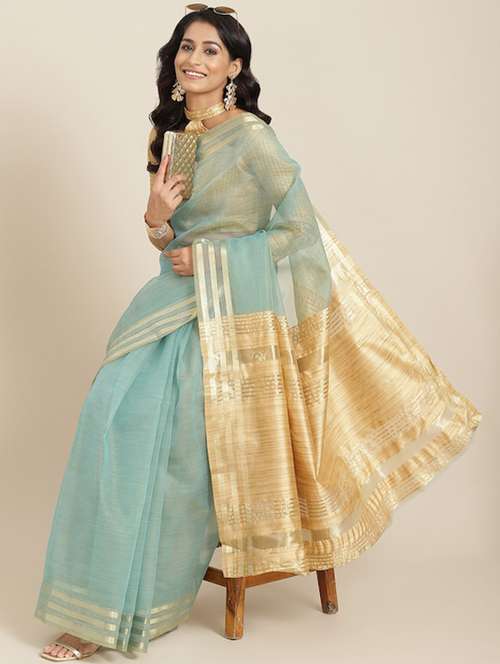 Riva Enterprise Women's Organza jari Weiving saree with blouse