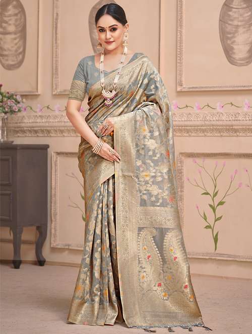 self design woven saree