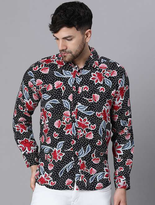 - » men black floral printed casual shirt