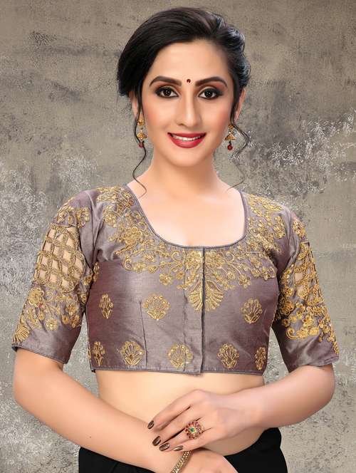 - » grey embroidered stitched blouse