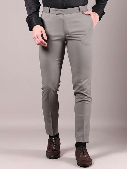 - » men solid regular fit flat front formal trouser