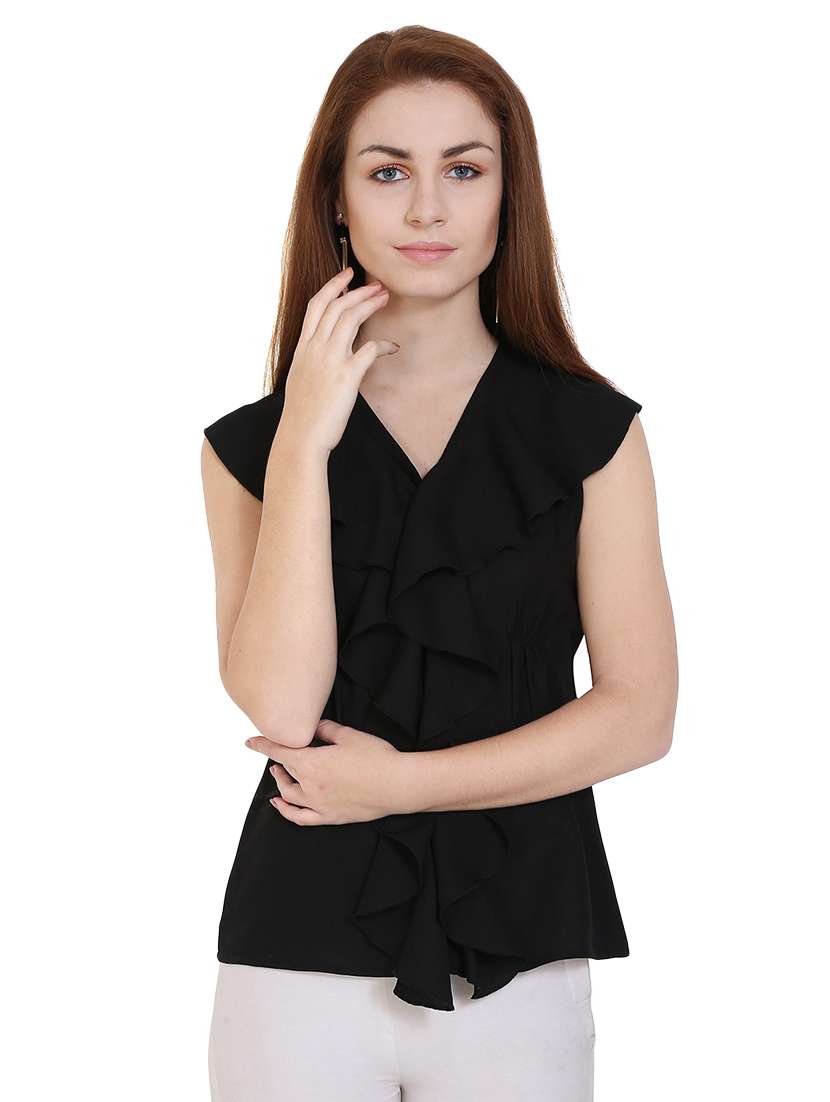 women's ruffle v neck top - 14769457 - Very Small Image - 1
