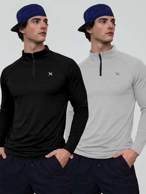 men pack of 2 solid long sleeve sports t-shirt