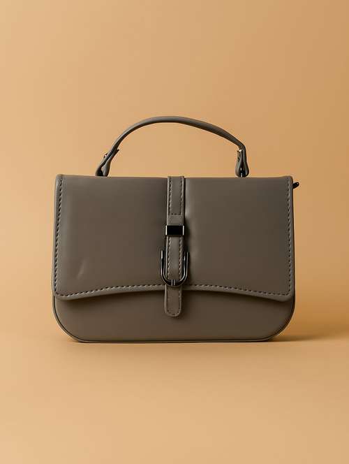 women grey pu sling bag with button closure - 22225240 -  Standard Image - 1 women grey pu sling bag with button closure - 22225240 -  Zoom Image - 1