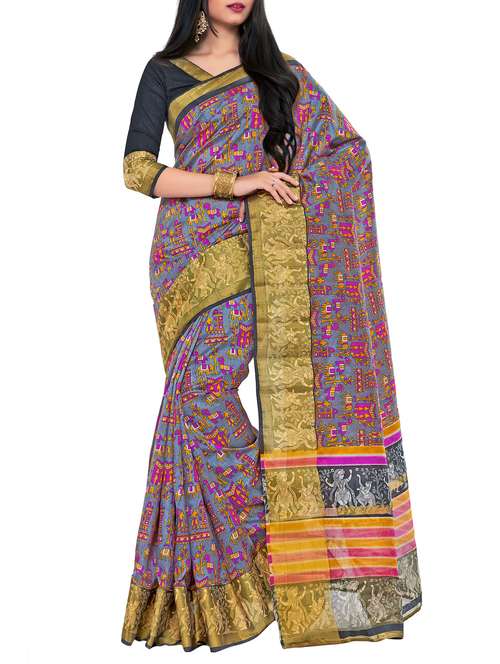 - » grey raw silk printed saree