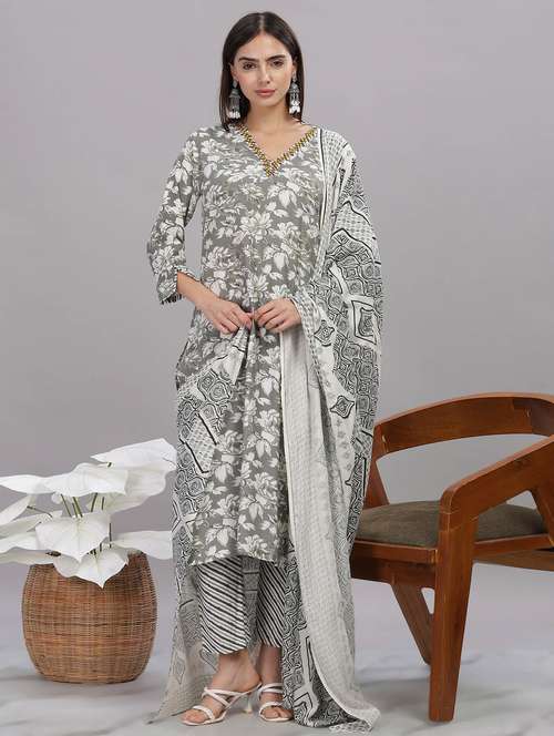 - Find gorgeous sets of ethnic wears in trending designs in grey colors suitable for casual wear of occasions.