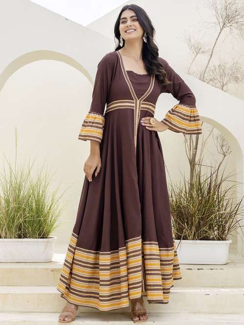 - Look and feel your best with the fresh collection of brown colorful ethnic dresses with trending diverse designs and silhouettes to choose from.