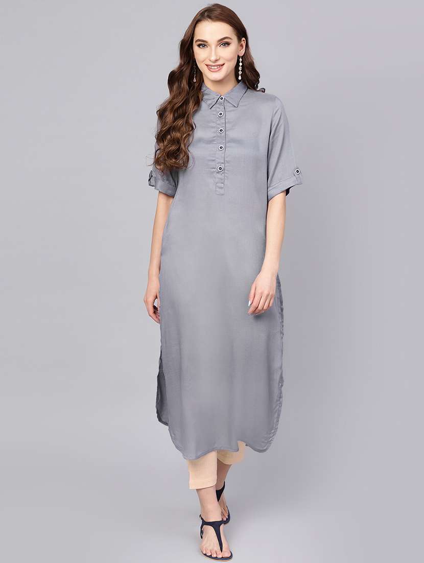 solid straight kurta pant set - 16302031 - Very Small Image - 1