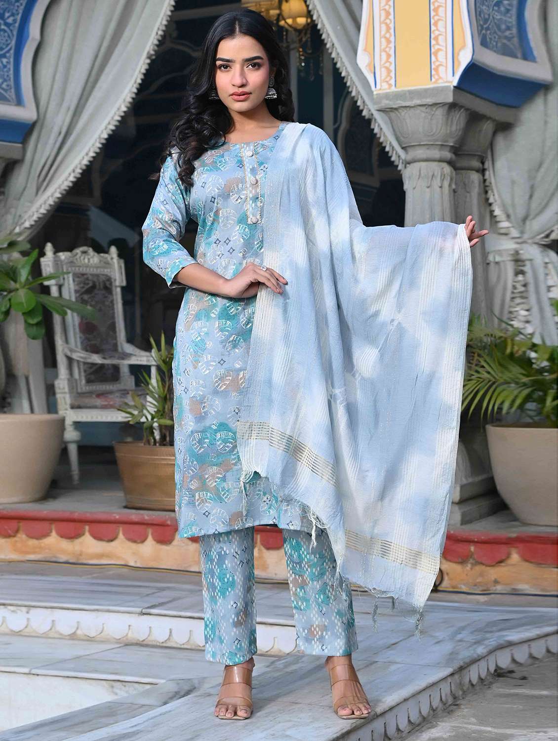 - Find gorgeous sets of ethnic wears in trending designs in light blue colors suitable for casual wear of occasions.