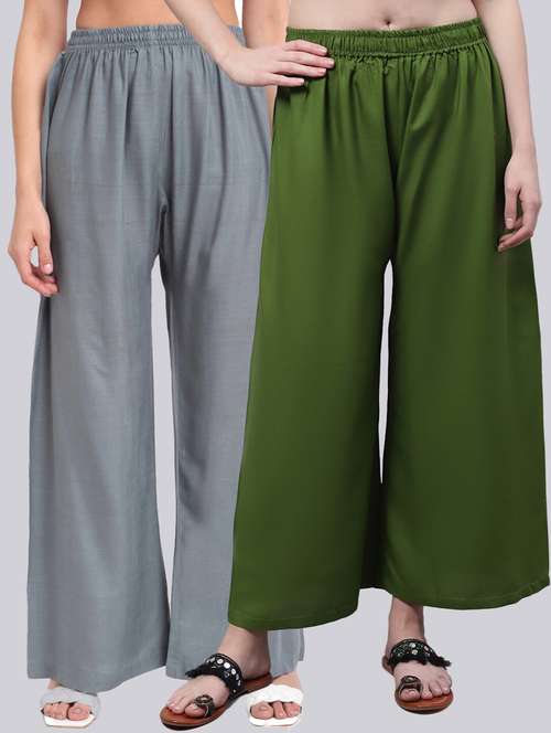 Upgrade your collection of warm-weather staples with these top-notch Light Olive and Grey palazzo combo by Valles365. Pair them with a flowy tee and lace-up sandals for a super chic look.