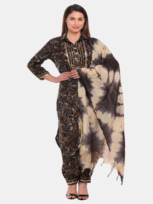 - » women grey shirt collar kurta salwar set with dupatta