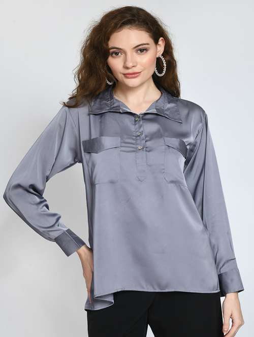 - Opt for this top made up of satin material and get it in a varied neck design.
